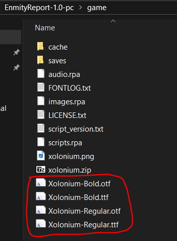 Our game uses the font Xolonium, and RenPy archiving conflicts with it.